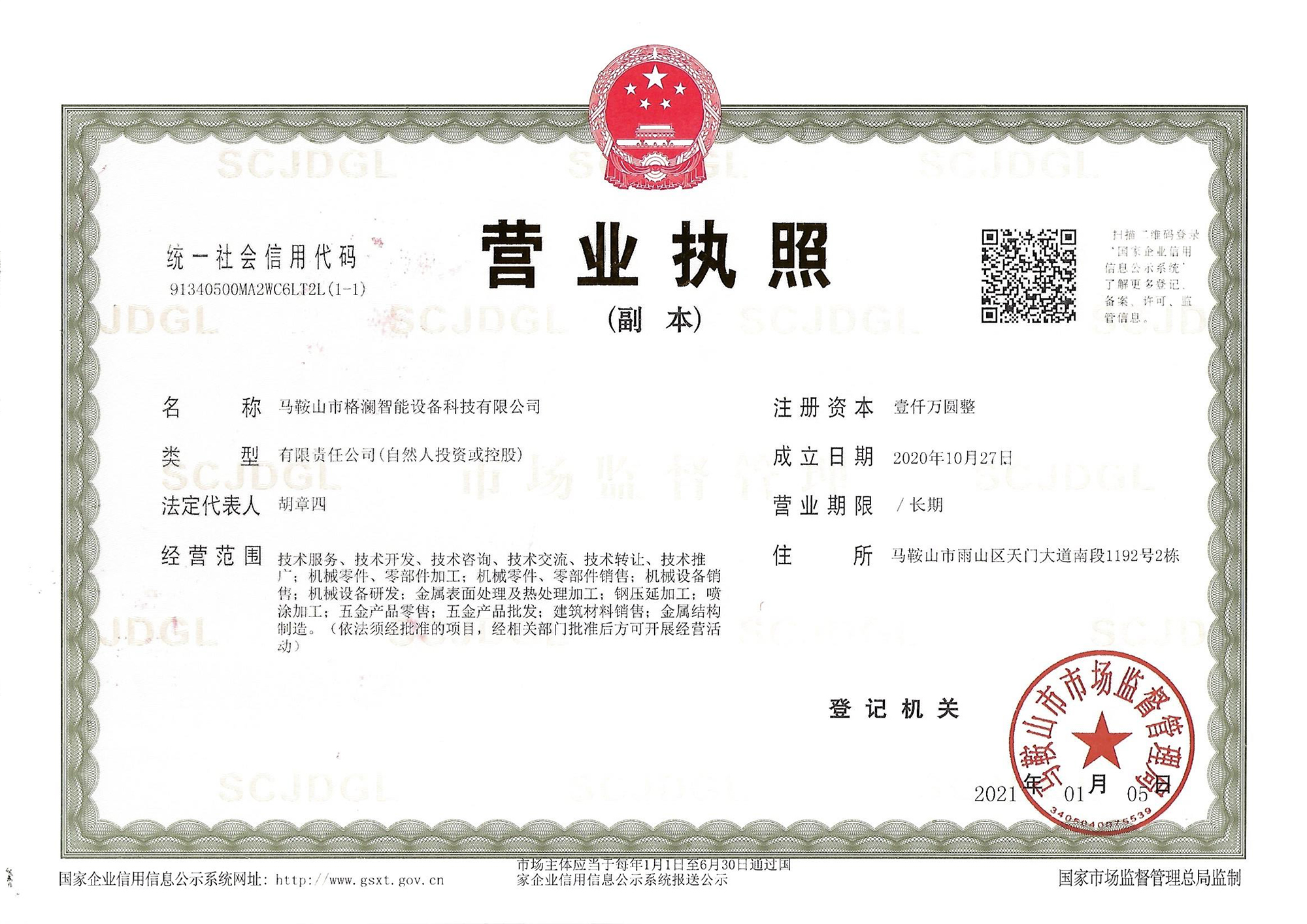 馬鞍山市格瀾智能設(shè)備科技有限公司位于皖江經(jīng)濟(jì)帶的鋼城馬鞍山市,公司距馬鞍山高速出口1公里。具有臨江近海,緊靠經(jīng)濟(jì)發(fā)達(dá)的長江三角洲的地理位置。